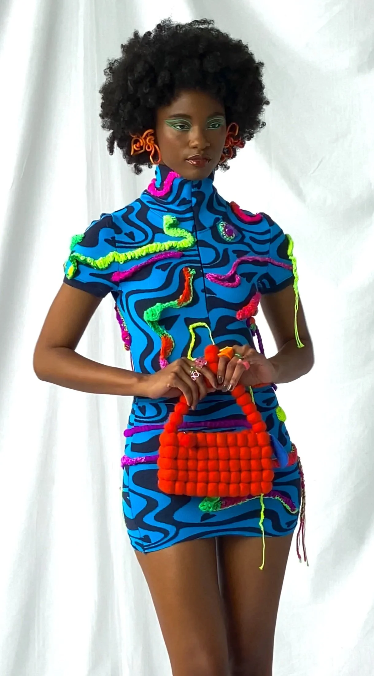 The shoot featured both Jeanice and Maelyn Roland, the FOUR CEES muse model, adorned in a one-of-a-kind design from Jeanice’s forthcoming collection, Radiance of the Sea. This collection is inspired by the ethereal glow of bioluminescent creatures, and the dress Maelyn wore reflected the collection’s theme of illumination and vitality. Complementing the look, Maelyn carried the I AM Prolific handbag from FOUR CEES’ I AM Collection, embodying the brand's ethos of mindfulness and empowerment.
